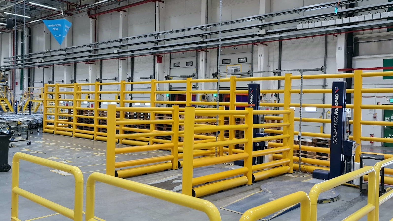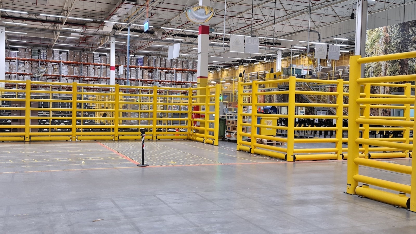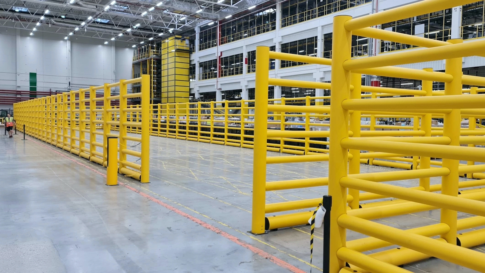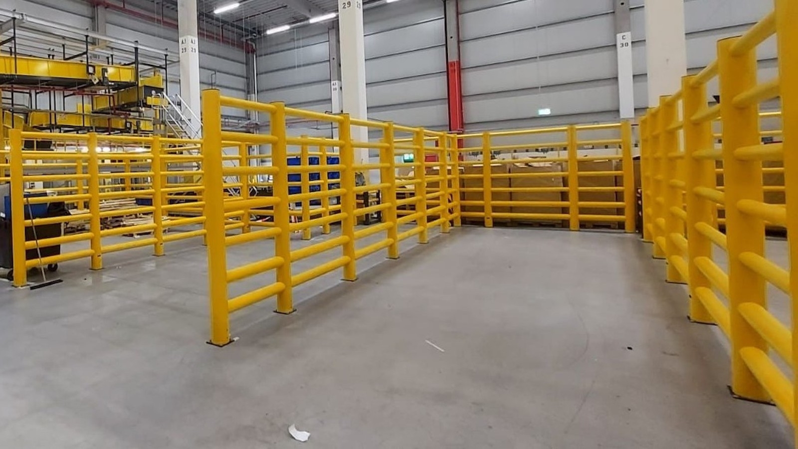 Vysoká bezpečnostní zábrana chránící chodce, stroje a vyvýšená místa pro skladování zboží