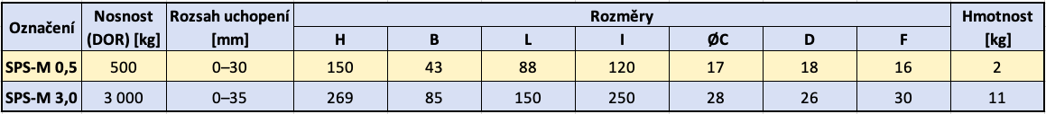 Šroubová svěrka SPS - M s nosnosti 500 a 3 000Kg je určena pro přepravu jednotlivých plechů a nosníků v horizontalní poloze.