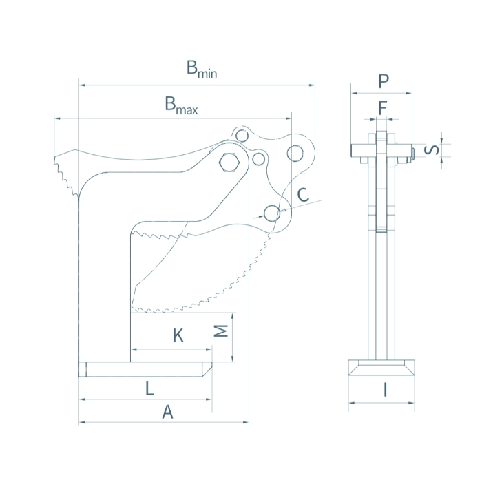 Šroubová svěrka SPS - M s nosnosti 500 a 3 000Kg je určena pro přepravu jednotlivých plechů a nosníků v horizontalní poloze.