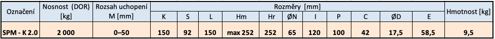 Svěrka SPM - K s nosnosti 2 000Kg je určena pro přepravu jednotlivých plechů v horizontalní poloze.