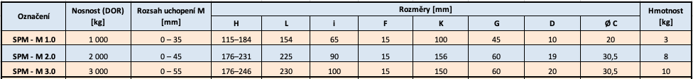 Svěrka SPM - M s nosnosti  1 000Kg , 2000Kg a 3 000Kg je určena pro přepravu jednotlivých plechů v horizontalní poloze.