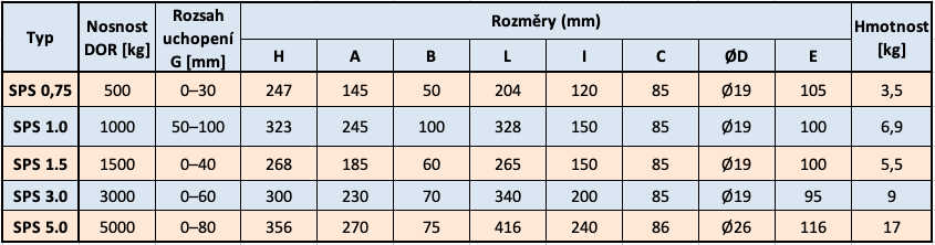 Svěrka SPS je určena pro bezpečné zvedání a přenášení jednotlivých plechů a konstrukcí ve svislé nebo vodorovné poloze, s ručním upínáním a vysokou odolností pro profesionální použití.